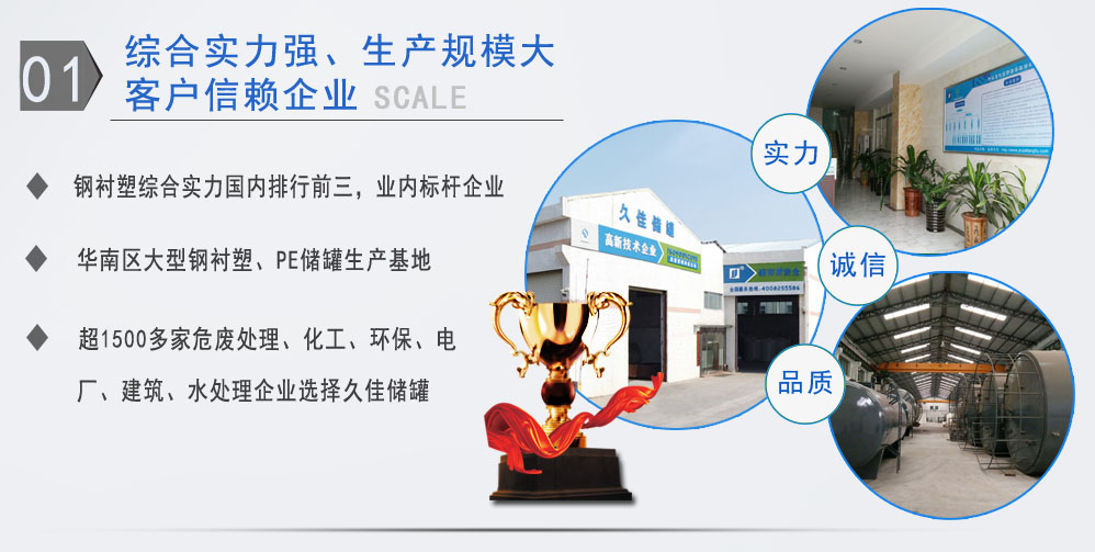 東莞市久佳防腐設(shè)備有限公司是華南地區(qū)大型規(guī)模的防腐環(huán)保儲存設(shè)備制造廠家,公司生產(chǎn)廠房達(dá)8000余平方米,集研發(fā)、生產(chǎn)、銷售于一體,有一支技術(shù)精湛、設(shè)計能力強的專業(yè)隊伍。國內(nèi)領(lǐng)先的生產(chǎn)工藝和完善的檢測設(shè)備,為產(chǎn)品提供了優(yōu)良的保證。產(chǎn)品廣泛應(yīng)用于石化、環(huán)保、釀造、水處理、化工、醫(yī)藥、食品、煉油、發(fā)電等行業(yè),精益求精,品質(zhì)久佳!